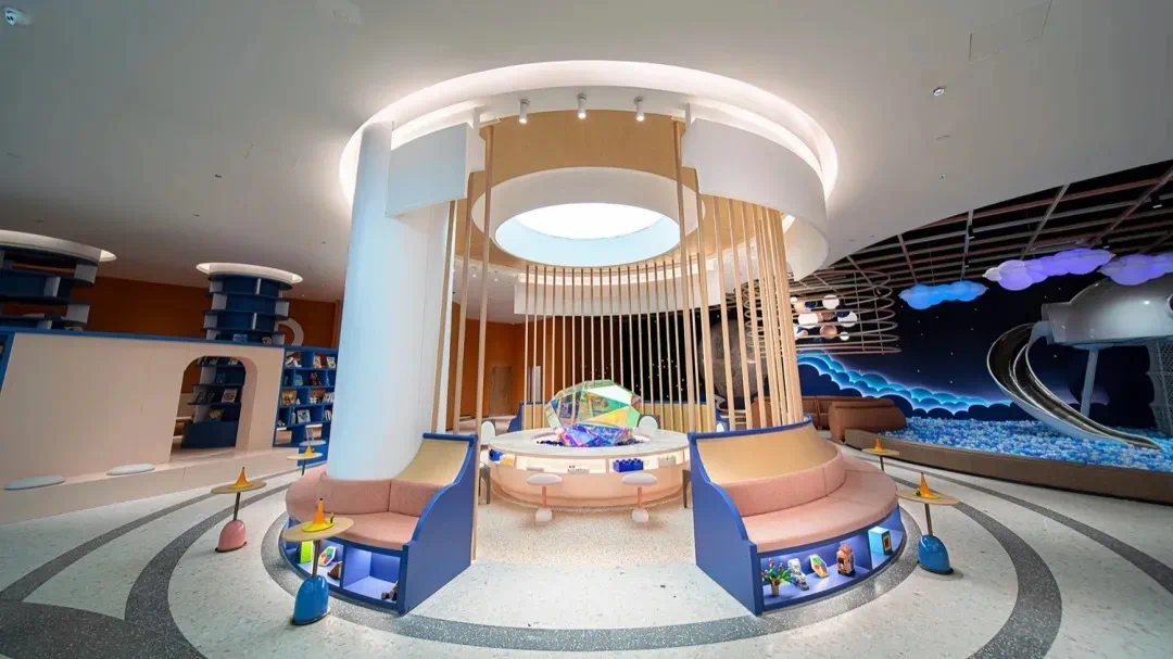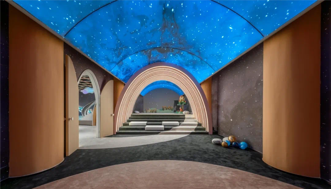 △架空层效果图最让人惊喜的还是区域内独一份约1200㎡的儿童高定成长空间——鲤乐荟!从《小王子》中获取灵感的星球与森林主题下沉式儿童空间,根据年龄打造了六大主题空间:森林银河、书香轨道、梦幻泡泡舱、穿越乐高世界、原力舱、新星场等。