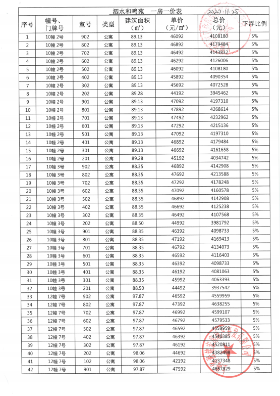 泗水和鸣本次取证房源568套,取证楼号:1-3#、6-8#、12#、17#、25-30#、33-35#、38-40#、44-54#、主力户型:建面约88-98㎡3房、建面约128㎡4房、精装修、均价46254元/㎡,