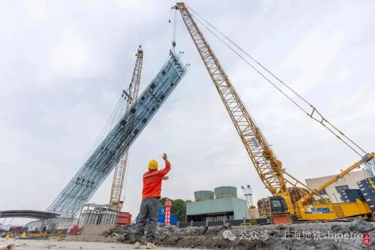 3月17日,随着这个长约40米的钢筋笼开始吊装,19号线江杨南路站首幅地下连续墙启动施工。这标志着19号线首个车站正式进入主体工程施工阶段。地墙的设置,能有效加强地下结构的稳定性,也是基坑下挖、盾构作业的前提,其施工精度和质量都格外关键。