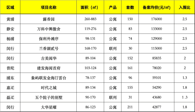 此次名单合计10个项目,分布在浦东、黄浦、静安、普陀、杨浦、闵行、嘉定,将合计推出1143套房源。其中10w+项目共4个:露香园、万科中兴傲舍、保利外滩序以及兰香湖贰号,且单价相较于往期都有所上涨。