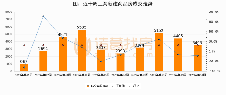 【上海成交周报】第50周新房成交3493套,涨价房源1855套
