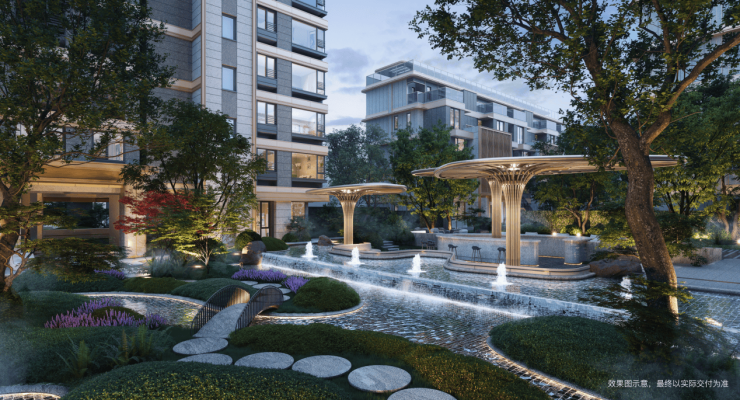 从市场上目前流出的资料来看,国贸海屿佘山的高奢美学气质在入口处就展露无遗——近60米尺度的超宽境迎宾大门,形成极具仪式感的城市形象;酒店式迎宾水景,以轻柔白噪音的形式,让归家心情瞬间切换;巨型艺术装置,铺垫诗意生活的氛围。三层叠进的归家场景设计,营造漫步佘山般峰回路转的洄游体验,洗去城市喧嚣,让每一次的归家,都是一次短暂的旅行。