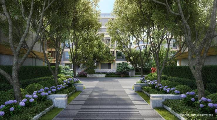 穿过归家大堂之后,就会进入到约1600㎡景观中庭,整个场景模拟海岛度假酒店,通过层叠水景并密植50年树龄乌桕,将雨林度假肌理引入日常。中庭空间还配置了烟花状艺术顶篷,让社交无惧风雨随时随刻发生。信步向前,则会进入到国贸海屿佘山叠墅组团的景观空间,从目前露出的资料来看,这里随处可见的葱郁树木,颠覆了以低矮灌木打造巷道的传统,为人们呈现了林荫下亲密交谈的场景。