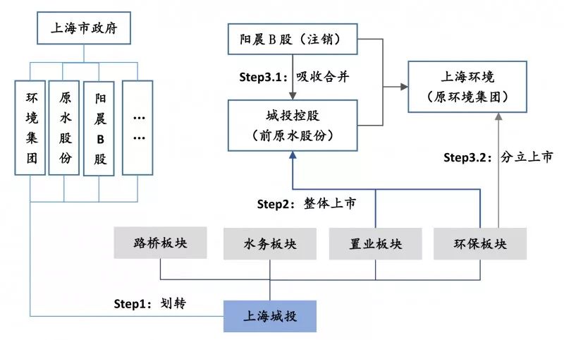城投控股旗下环境集团整合阳晨B股后于2017年3月分立上市。阳晨B股前身为上海金泰股份有限公司,于1995年以人民币特种股票(B股)募集方式成立,于2003年更名为阳晨B股,涉及污水处理等环保业务及市政基础设施业务。2011年,上海城投通过无偿划转取得阳晨B股56. 83 % 股份控股阳晨B股。