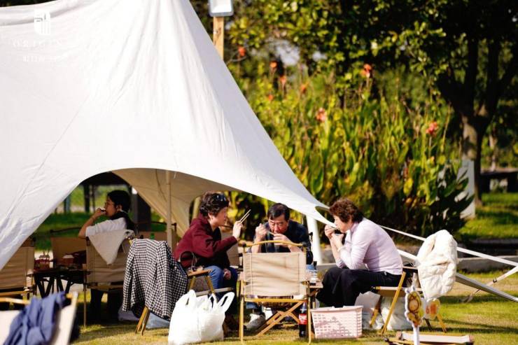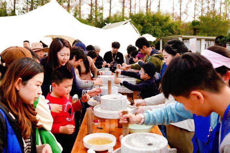 田垄间,携手采摘带着晨露的鲜蔬;石磨旁,合力研磨出清新豆香;案板前,围坐包起鼓鼓的饺子与馄饨。野炊的烟火在晴空下袅袅升腾,邻里之间没有生疏的客套,只有自然的分工、默契的配合。欢声笑语伴着食物的香气漫开,情谊也在共同劳作中愈发醇厚。