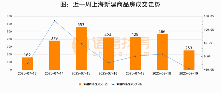 【上海成交日报】07月19日新房成交253套、二手房917套;涨价房源103套