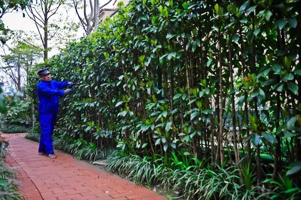 业主想在楼下欣赏春色,偏偏花圃、草坪尽是落叶