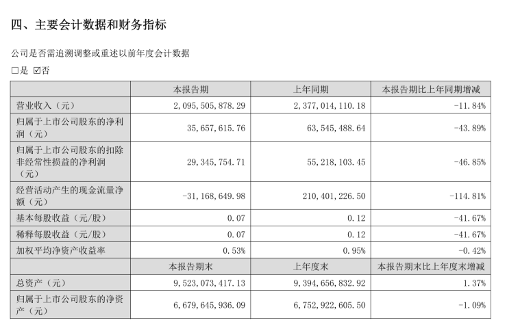 8月27日,大亚圣象发布2025年年半年度报告,大亚圣象实现营业收入约20.96亿元,同比减少11.84%;归属于上市公司股东的净利润约3566万元,同比减少43.89%;基本每股收益0.07元,同比减少41.67%。