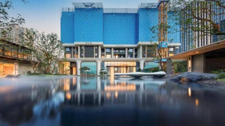 中建玖上琅宸以豫园为灵感,打造了一座当代山水隐园。在社区内部,遵循豫园“山脉+水脉”的布置手法,全冠移植了包括乌桕树、百年罗汉松、红枫、铁冬青等众多来自全国的昂贵树种,引水入园,庭荫树影,形成立体的山水园林景观。
