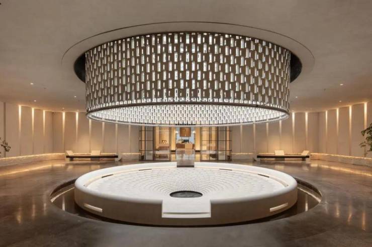 名为“四水归堂”的艺术装置寓意聚财聚气,它采用景德镇匠人手工烧制的艺术陶瓷拼接而成,与“浮光池院”相呼应。从下往上仰望,不管阴晴雨雪,总有不一样的风景和惊喜。