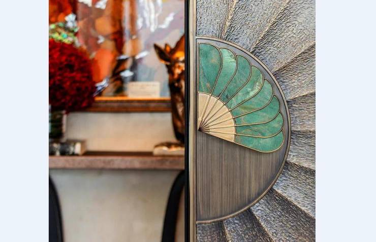 这一点,从你推门而入那一刻就具象化了!大门造型灵感来源于孔雀开屏,孔雀羽毛之下隐藏着指纹锁,既保证了安全性,又增添了独特的艺术美感。