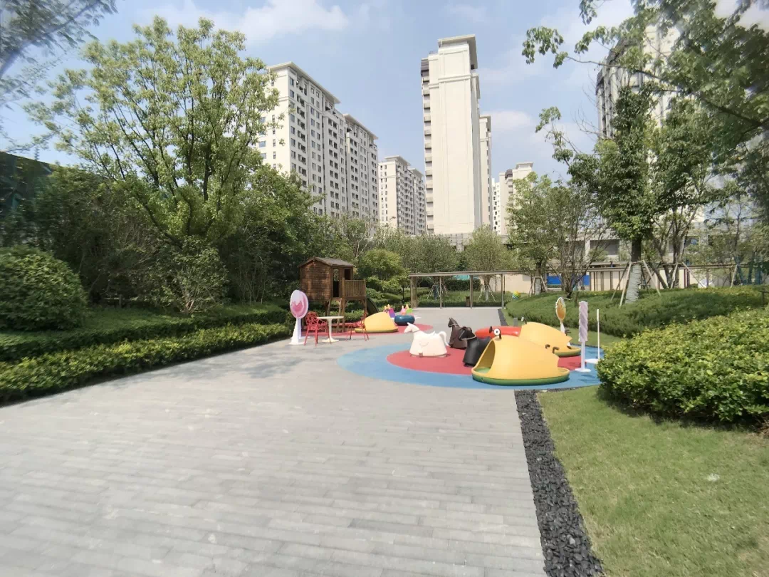小区内部有小型的儿童游乐设施,满眼望去绿化很多。