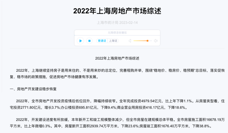 近日,上海统计局官网发布“2022年上海房地产市场综述”。全文如下: