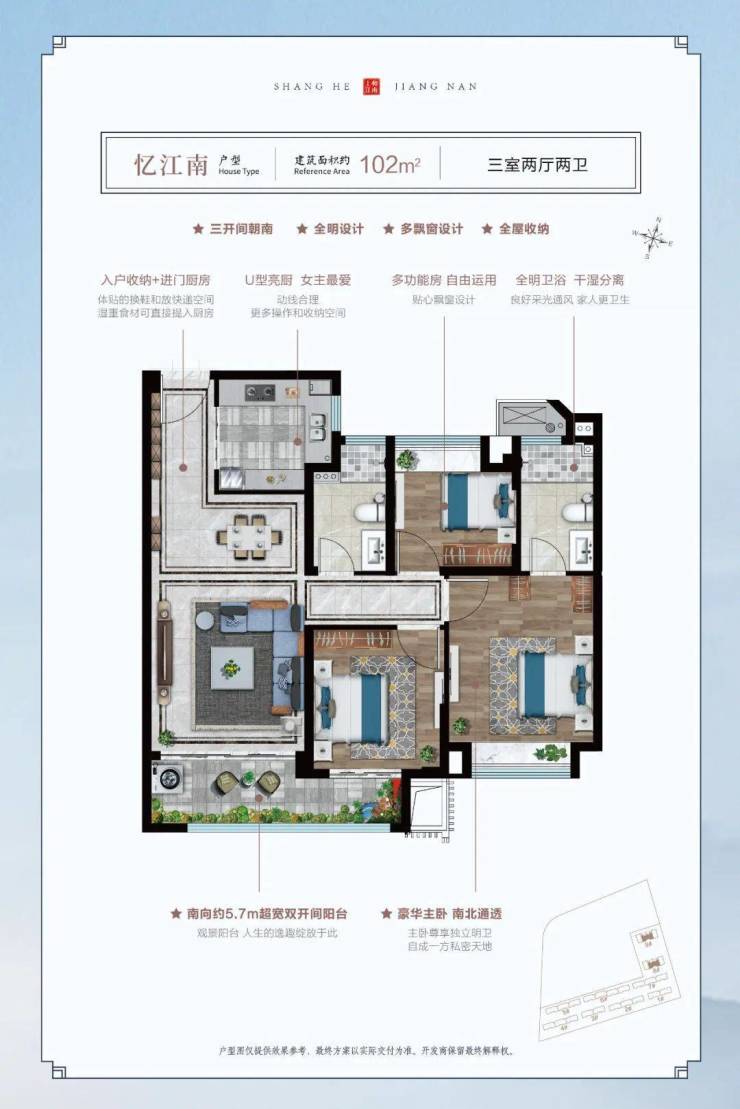 建面约102㎡三房两厅两卫