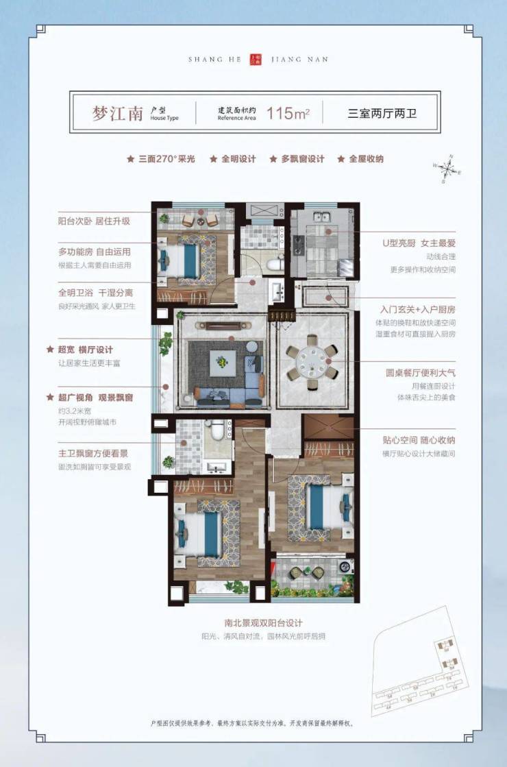 建面约115㎡三房两厅两卫