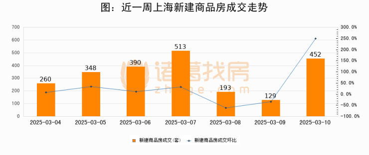 【上海成交日报】03月10日新房成交452套;涨价房源6254套