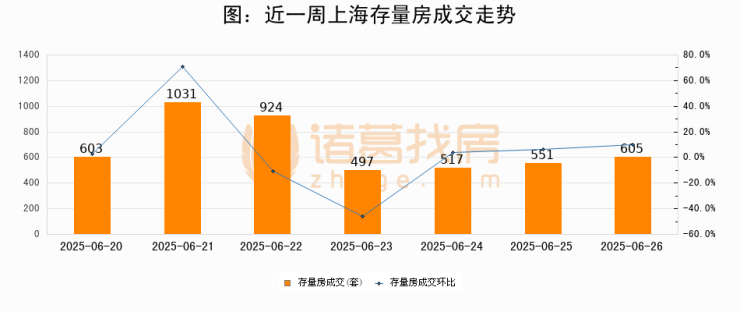 【上海成交日报】06月26日二手房605套;涨价房源135套