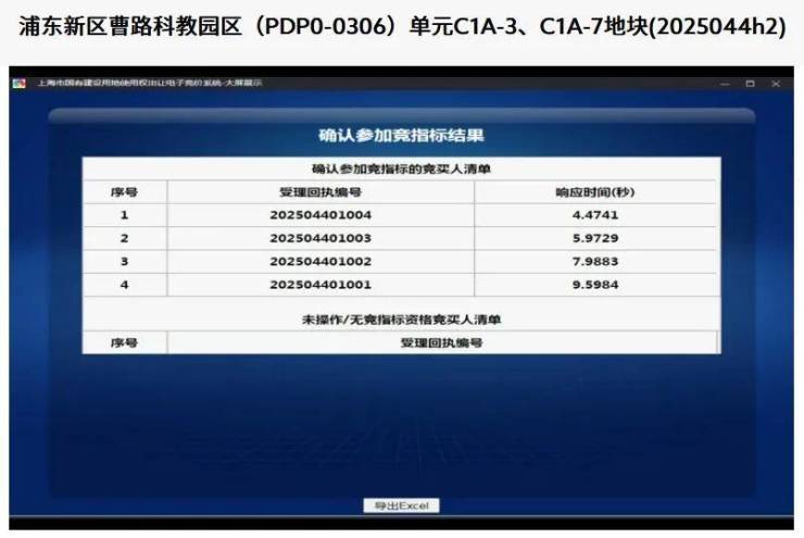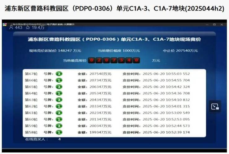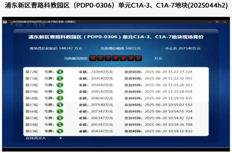 浦东新区曹路科教园区(PDP0-0306)单元C1A-3、C1A-7地块共吸引4家竞买人:1象屿、2安徽高速、3联发、4国贸。