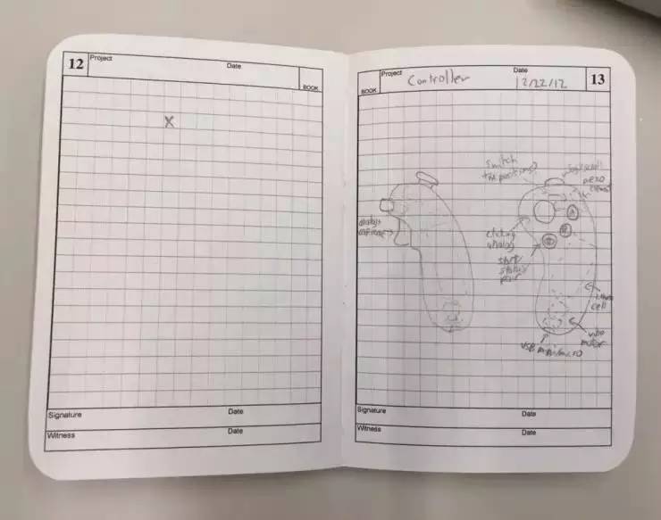 这天晚上,Nirav Patel 掏出他随身携带的口袋笔记本,用铅笔在上面勾勒。很快,他就画出了一个物体的俯视图和侧视图。在俯视图上,这东西看起来像是利马豆。而它的侧视图看起来更像是戴着小厨师帽的海象公公——当然是机器人版的海象公公。图上的各个按钮和奇怪形状旁是注释:“滚轮”、“感应器”(vibe motor)、“压电元件”(piezo element)“点击模拟器”(clicking analog)。在纸页的上方“项目”一栏,Patel 写下了“控制器”。他当时想,既然 Oculus 要做 VR 头显,也应该考虑下用头显玩游戏的较佳方式。