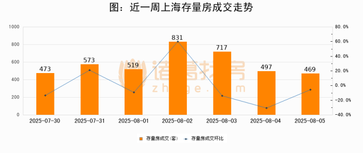 【上海成交日报】08月05日二手房469套;涨价房源133套
