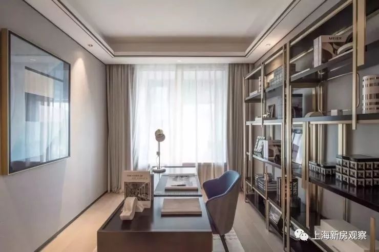 书房空间在动线上主要采用硬朗简洁的直线条,同时增强空间的层次感,既凸显了先进材质的精致,又符合高端的审美趣味。