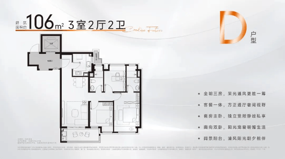 19号楼建筑面积约95㎡三房两厅一卫(72套)、建筑面积约106㎡三房两厅两卫(36套)