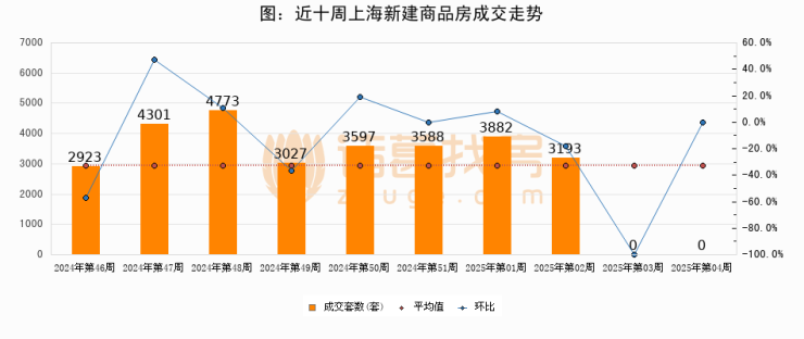 进入2025年第04周(01月20日-01月26日),上海新建商品房成交0套,较上周持平