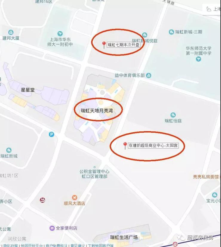 商业配套:瑞虹天地星星堂、月亮湾、易买得、绿地G-Super、瑞虹生活广场等