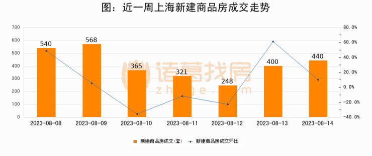 【上海成交日报】08月14日新房成交440套;涨价房源197套