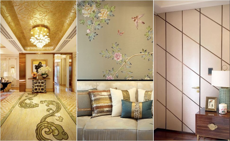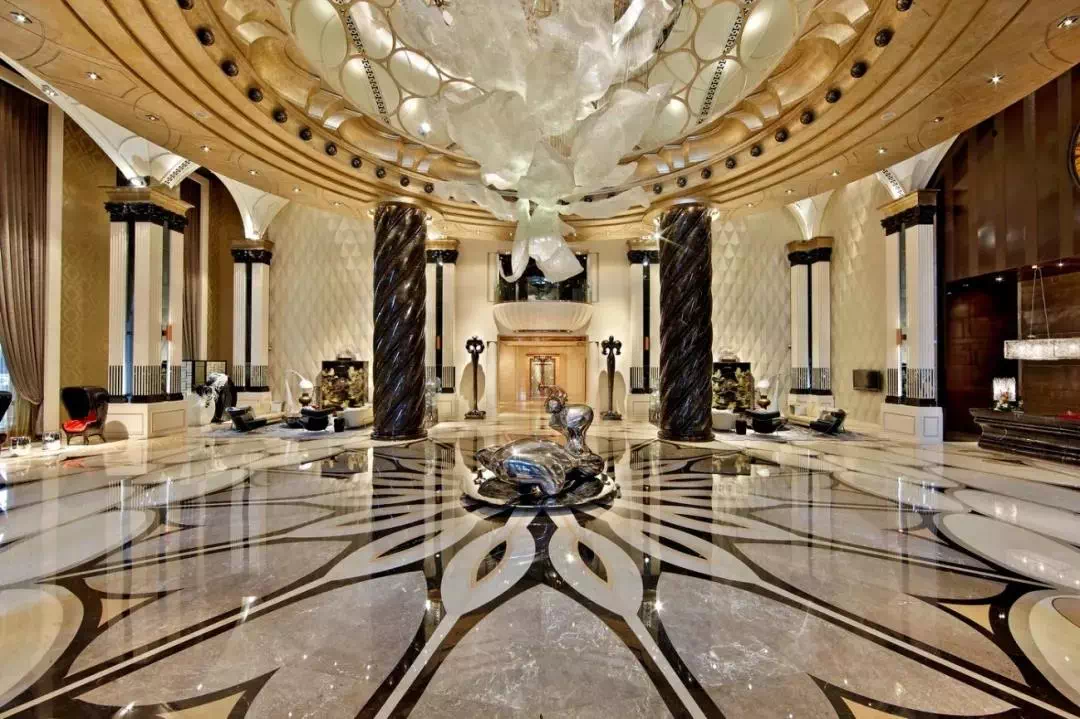 (2)建材品质:名贵石材拼花、祥云样式金箔饰面、独特刺绣墙饰面……