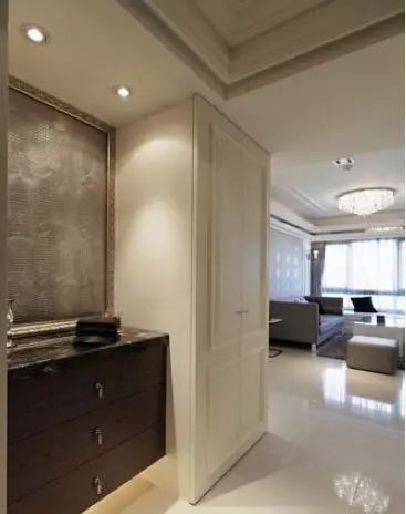以上这套小户型单身公寓的设计新古典风格低调而华丽,如果您也喜爱这种风格希望能给你的装修做个参考。