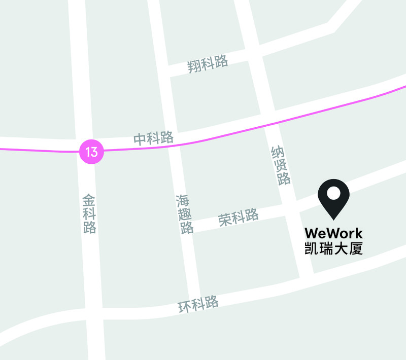 位于浦东新区,张江科技园中区核心地段,WeWork凯瑞大厦将为您带来全新的工作方式。地铁13号线中科路站步行400米,距离浦东国际机场25公里,便利的交通让您的工作和生活都更轻松。整个办公