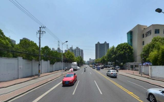 上海地铁15号线的吴中路站位于闵行区、徐汇区、长宁区的三区交界处,站点本身位于闵行区境内、东侧是徐汇区、北侧是长宁区。吴中路站也是这也是15号线进行转弯的一个地方,该站点位于桂林路上面。下图就是桂林路与吴中路的十字路口附近。