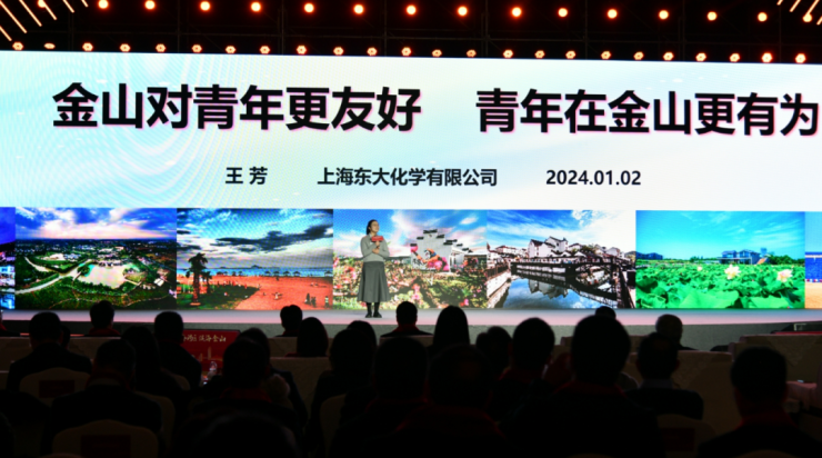作为青年代表,上海东大化学有限公司品管部经理助理王芳以《金山对青年更友好 青年在金山更有为》为主题发表演讲,切身讲述了金山何以成为青年“低成本置业,高品质生活”的首选之地。