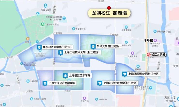 包含华东政法大学、东华大学、上海外国语大学、上海对外贸易大学等众多高校的松江大学城,能为松江新城产业源源不断的提供新鲜血液。
