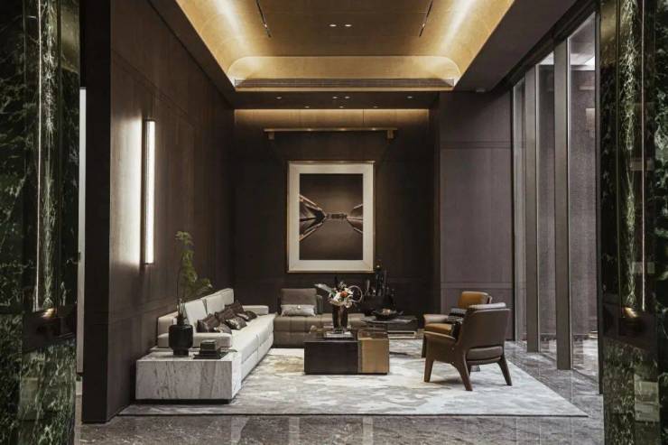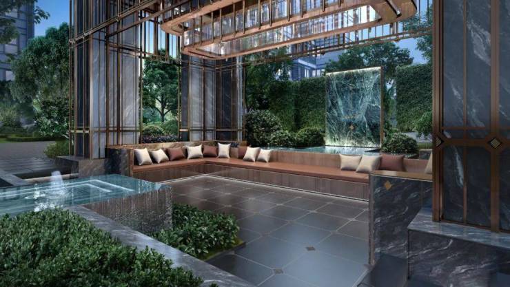 项目于细节处展现匠心,将造价不菲的奢石融入入户大堂、墙壁以及园林,大量使用了产地不同且产量稀缺的奢石。