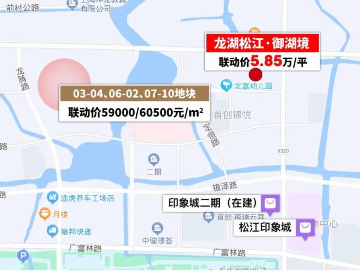 一方面,松江新城的价值高度已有官方背书。2022年,松江新城广富林街道2块宅地成功拍卖,均吸引了多家开发商争抢,07-10地块的联动价达到了约6.05万/㎡!