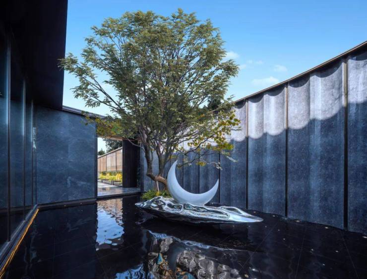 在稀贵名木的甄选上,项目选用了造价约30万元的斜飘乌桕,故宫同款汉白玉打造的星月族徽相辉映,营造高定仪式感的生活。