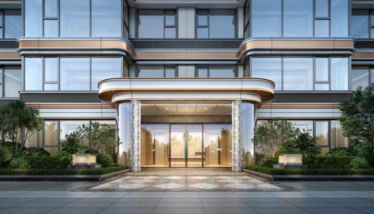 龙湖松江·御湖境以3.0弧形天幕立面,甄选鎏金橙色系定制铝板,搭配LOW-E中空玻璃,彰显松江御湖境的尊贵品位。