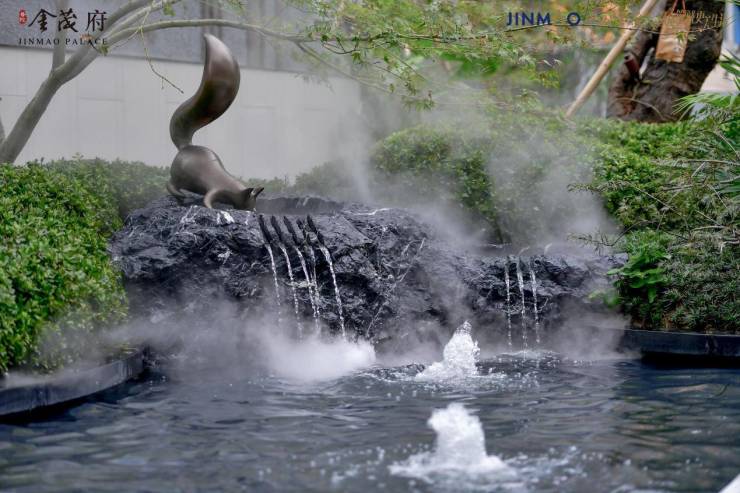 采用多种掇山置石的设计手法,叠石成山,卧石成靠,嵌石入水…….请石引水,财富东来。