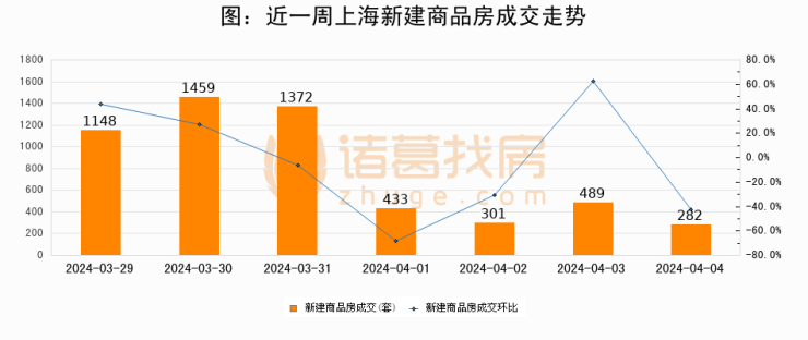 【上海成交日报】04月04日新房成交282套;涨价房源88套