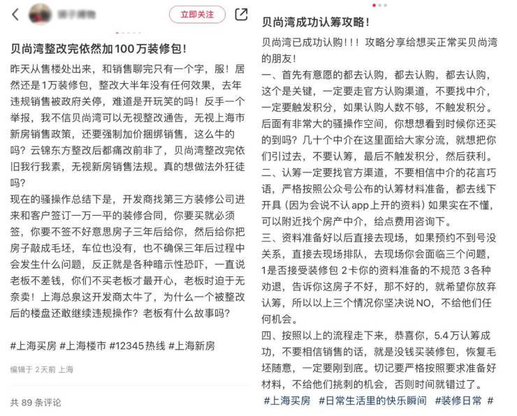 虽然经历了一次“叫停认购”,但此次贝尚湾归来之后,依旧存在非常规操作。有成功认购的购房者发帖称,“销售会暗示买装修包”,但只要态度坚决还是可以正常走完认购流程。