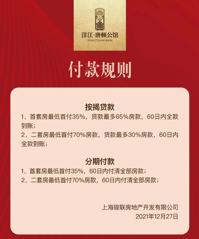 洋江唐顿公馆,2003年就拿地,捂盘多年后于2022年初入市,认购期被曝出:要收相当于一个“价值100万的装修包”、 “要求全款”,违规传闻此起彼伏。开发对此回应称:付款规则要求无论按揭贷款还是分期付款,必须60日内全款到账;但对装修包相关事宜闭口不谈。