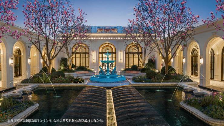 「华亭烟雨」造设波光喷泉与孔雀雕塑,八株紫玉兰盛绽其间,将自然之力凝聚为艺术语言;「千步廊」汲取和平饭店的设计灵感,地面通铺同款“金珠算盘”,并融入绒绣、顾绣、海派玉雕等“上海非遗十绝”,将海派东方的摩登风韵尽致演绎;「孔雀厅」同源上海华尔道夫酒店精髓,约14米挑高宏阔大堂,开阔奢华,穹顶巨幕彩绘玻璃,历经团队三轮打样,终成绮丽之景。