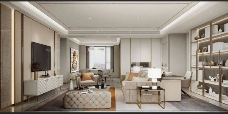 以建面约165㎡奢境户型为例,南向四开间面宽可达约16.2m,约6.2米横厅连接宽幕阳台,突破性尺度设计,带来通透的全景视野,一眼望向城市自然与繁华,居住于此,大平层的尊崇奢居体验油然而生。