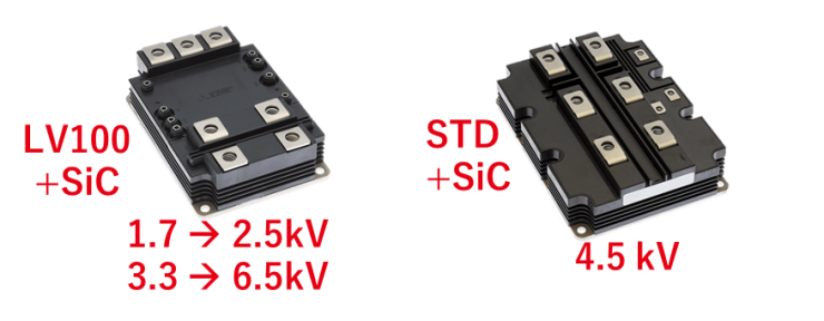 面向高压输配电应用,采用 LV100 封装,额定电压3.3kV、电流200–800A。创新的 SBD 嵌入式设计使芯片面积缩减54%,开关损耗降低58%,彻底消除双极退化风险。该模块已于2023年5/6月正式发布并量产,目前已应用于全球 HVDC输电 与轨道交通系统。