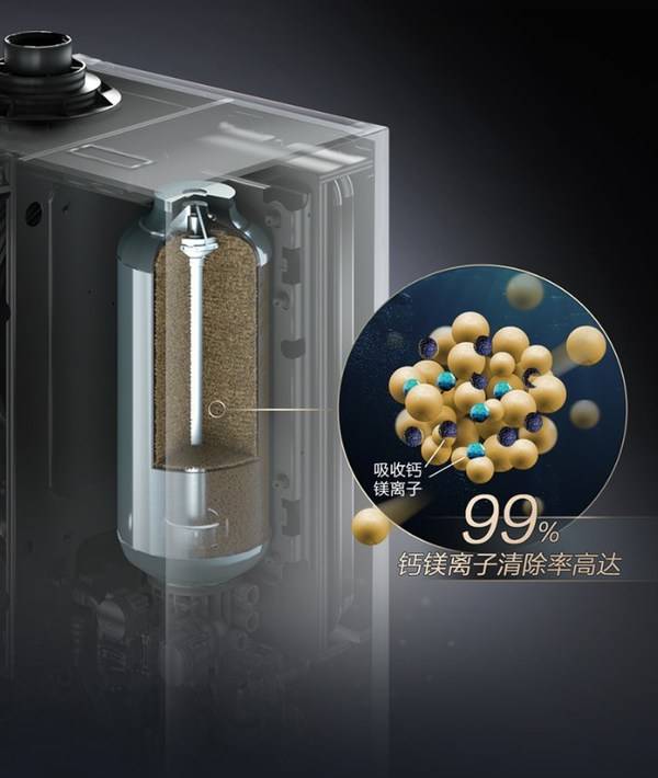 首创专利热水软水集成系统*3,将零冷水燃气热水器和软水机合二为一,用更精致的产品外观凝聚沐浴美容新能量。高效钙、镁离子置换技术让硬水乖乖变"软",食品级树脂微粒牢牢吸附水中的钙、镁离子,同时置换出功能离子,美容软水由此诞生:水质硬度小于等于17.1ppm*4,符合NSF国际软水机水质标准。