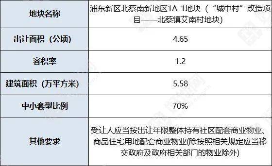 好地网12月18日讯(研究员 余依依) 近日,浦东新区发布一宗协议出让地块,为浦东新区北蔡南新地区1A-1地块(“城中村”改造项目——北蔡镇艾南村地块),土地面积4.65公顷,容积率1.2,建筑面积5.58平方米,为普通商品房,出让价格314619万元,楼面均价56383元/㎡,意向用地单位是隶属于浦开集团的上海北蔡新城镇开发有限公司。