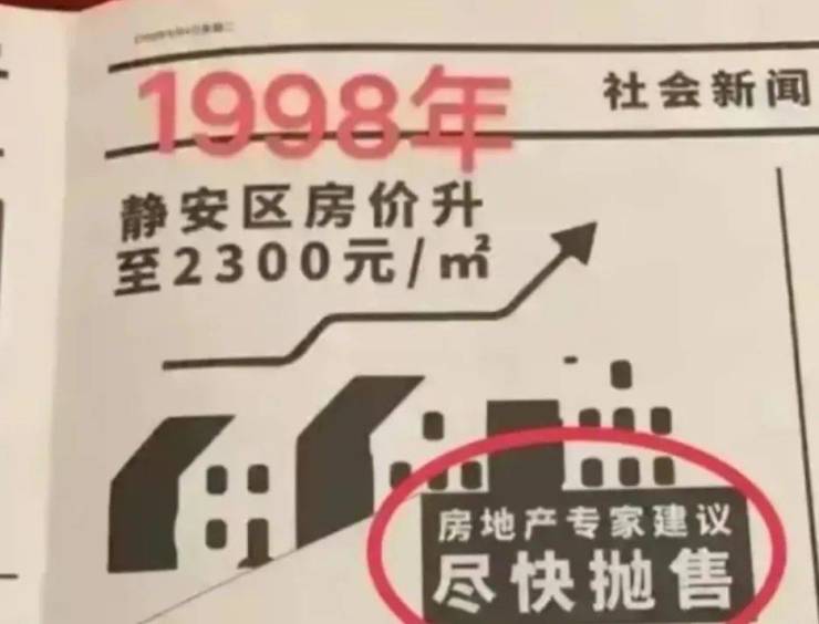 当年,上海的平均月工资是1005元。那一年,上海的平均房价有所上涨。报纸上写着:静安区房价升至2300元/㎡,房地产专家建议尽快抛售。