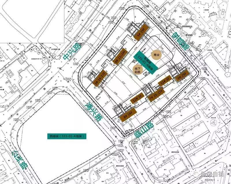 万科中兴路壹号目前东地块(332-01-A地块)以于2018年7月动工,根据公示信息显示,332-01-A地块新建6幢高层,部分3层:其中地块北侧3#楼为17层高层(局部14层);4#楼为24层高层(局部21层);5#楼为29层高层,也是地块中较高的建筑;地块南侧6#楼为25层高层(局部3层);7#楼为27层高层(局部25层);8#楼为16层高层;而11#楼和12#楼为3层住宅。